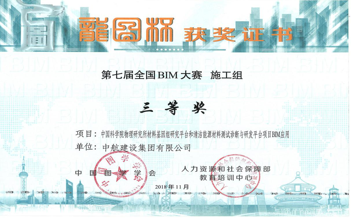 11月29日,在中国图学学会于国家会议中心召开的第七届“龙图杯”全国BIM大赛颁奖典礼及高峰论坛上,我集团公司的“中国科学院物理研究所材料基因组研究平台和清洁能源材料测试诊断与研发平台项目BIM应用”成果及“科研及附属用房等2项项目BIM应用”成果分别获得三等奖和优秀奖。