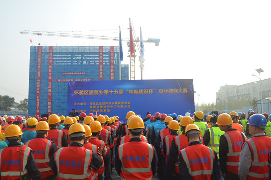 10月18日,由怀柔区住建委、建筑行业工会联合会共同主办,中欧注册_中欧(中国)协办的怀柔区建筑业第十五届“中航建设杯”职业技能大赛,在我集团公司承建的一零一中学怀柔校区扩建项目部拉开帷幕。怀柔区住建委工程质量监督站站长单焜,区建筑业协会会长王贵军,区总工会生产生活部部长李文兴,区人力资源和社会保障局职工培训劳动鉴定中心主任刘利民,集团公司总工程师陈劲,工会主席郑春梅一同出席本次活动。