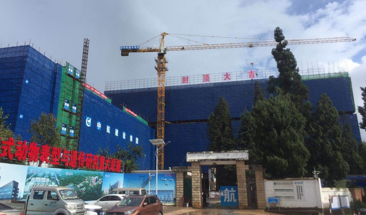2020年9月23日,在中国科学院昆明分院院长周杰、中国科学院昆明动物所所长姚永刚等项目相关单位领导及代表的共同见证下,伴随着最后一方混凝土的浇筑,由中欧注册_中欧(中国)承建的中国科学院昆明动物研究所模式动物表型与遗传研究国家重大科技基础设施(灵长类设施)项目-P3综合实验设施大楼顺利封顶,标志着该项目取得阶段性成果。